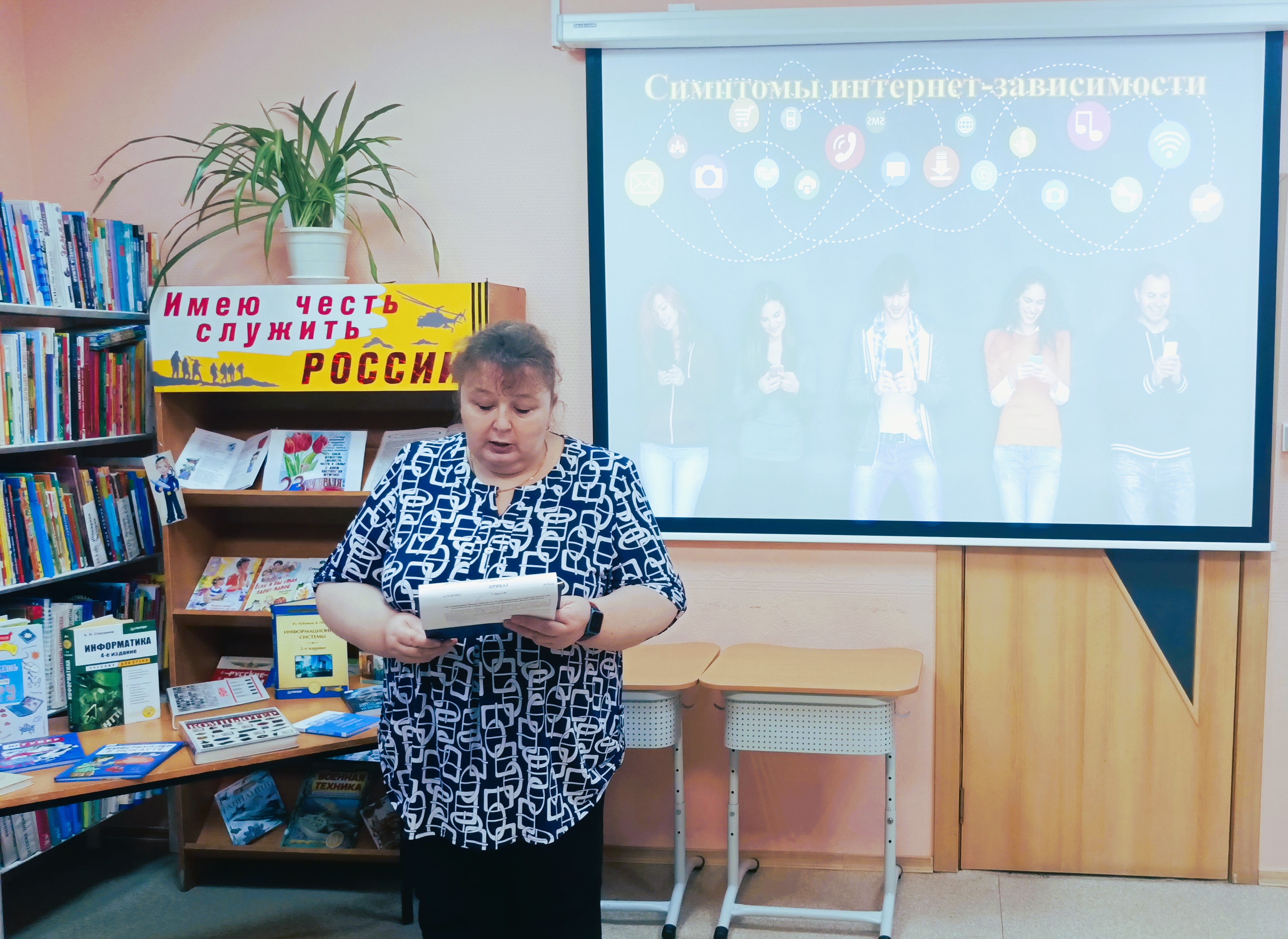 Мероприятие началось с размышлений, в чем польза и вред всемирной паутины. Библиотекарь рассказала историю развития и основные правила безопасности при пользовании Интернетом, о полезных электронных ресурсах для школьников, которыми можно пользоваться в процессе подготовки домашней работы, а также для интересного проведения досуга.