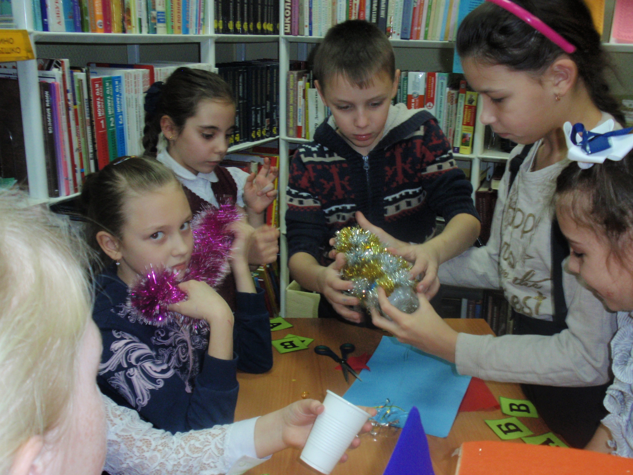 В нашей библиотеке ежегодно проходят новогодние мероприятия для наших маленьких читателей. В этом году в библиотеке оформлена новогодняя книжная выставка «Зимушка хрустальная», на фоне которой и проходила шуточная викторина «Новогоднее чудо». Ребята предварительно разделились на три команды. И викторина началась.