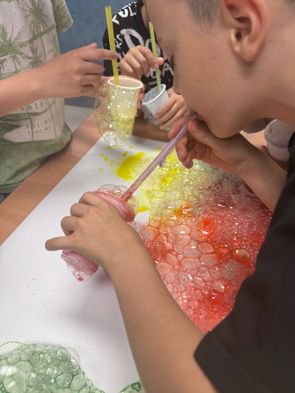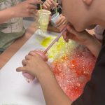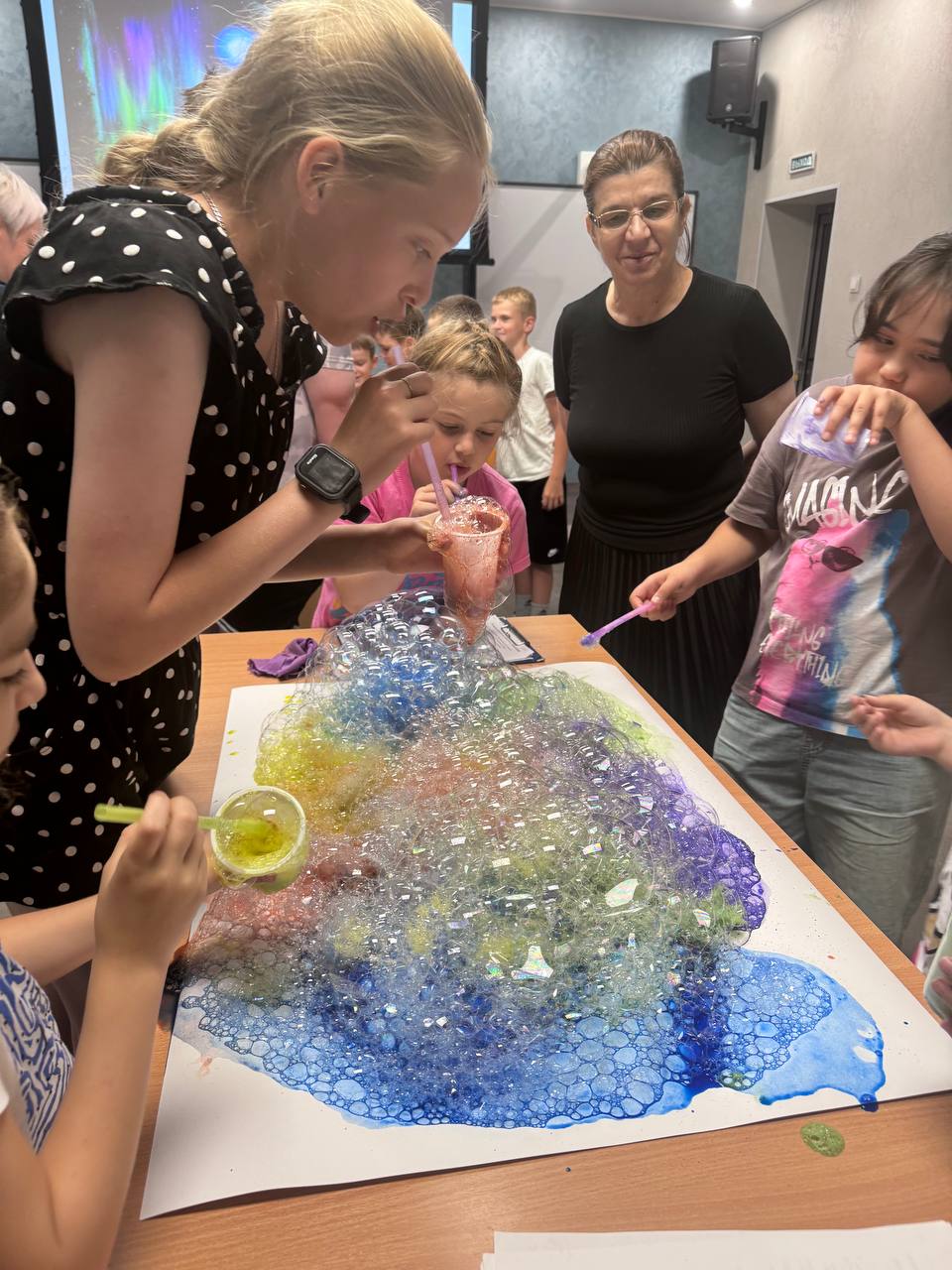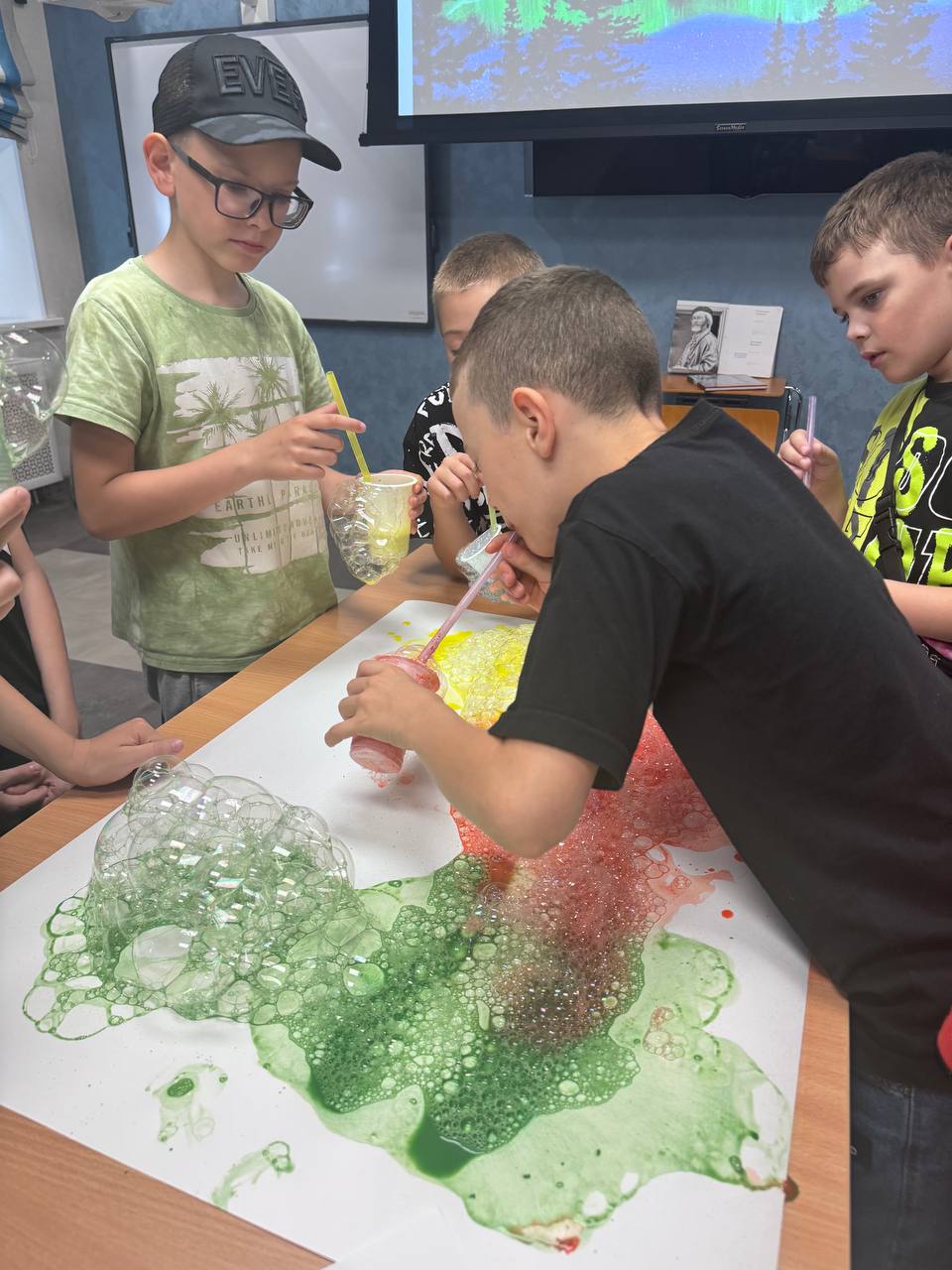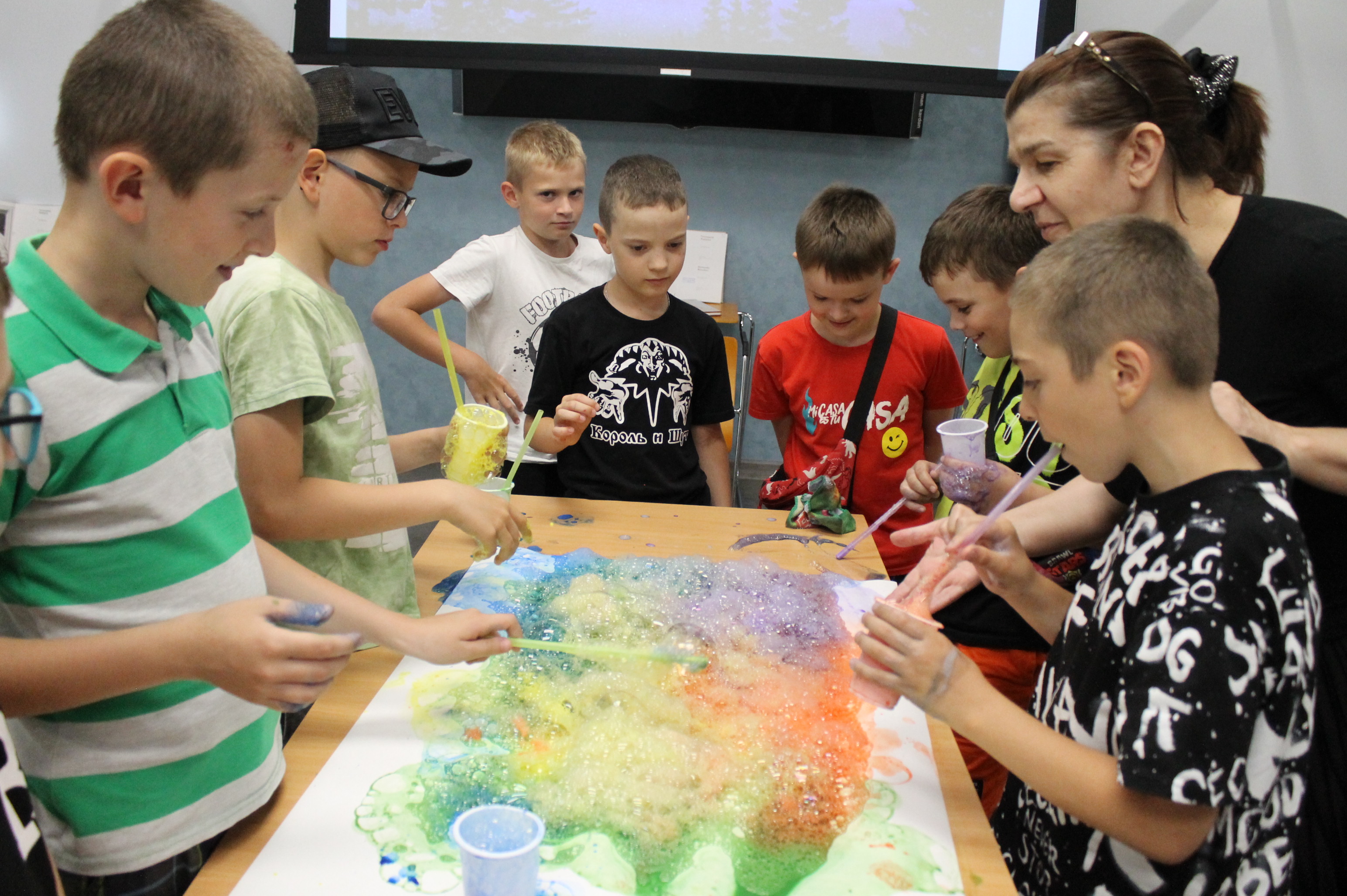 В заключительной части ребятам было предложено нарисовать природный пейзаж Югры, с помощью разноцветной пены. Это нетрадиционная техника рисования пришлась по душе детям. Все дети с большим интересом и удовольствием выполняли работу. В результате получились яркие рисунки.