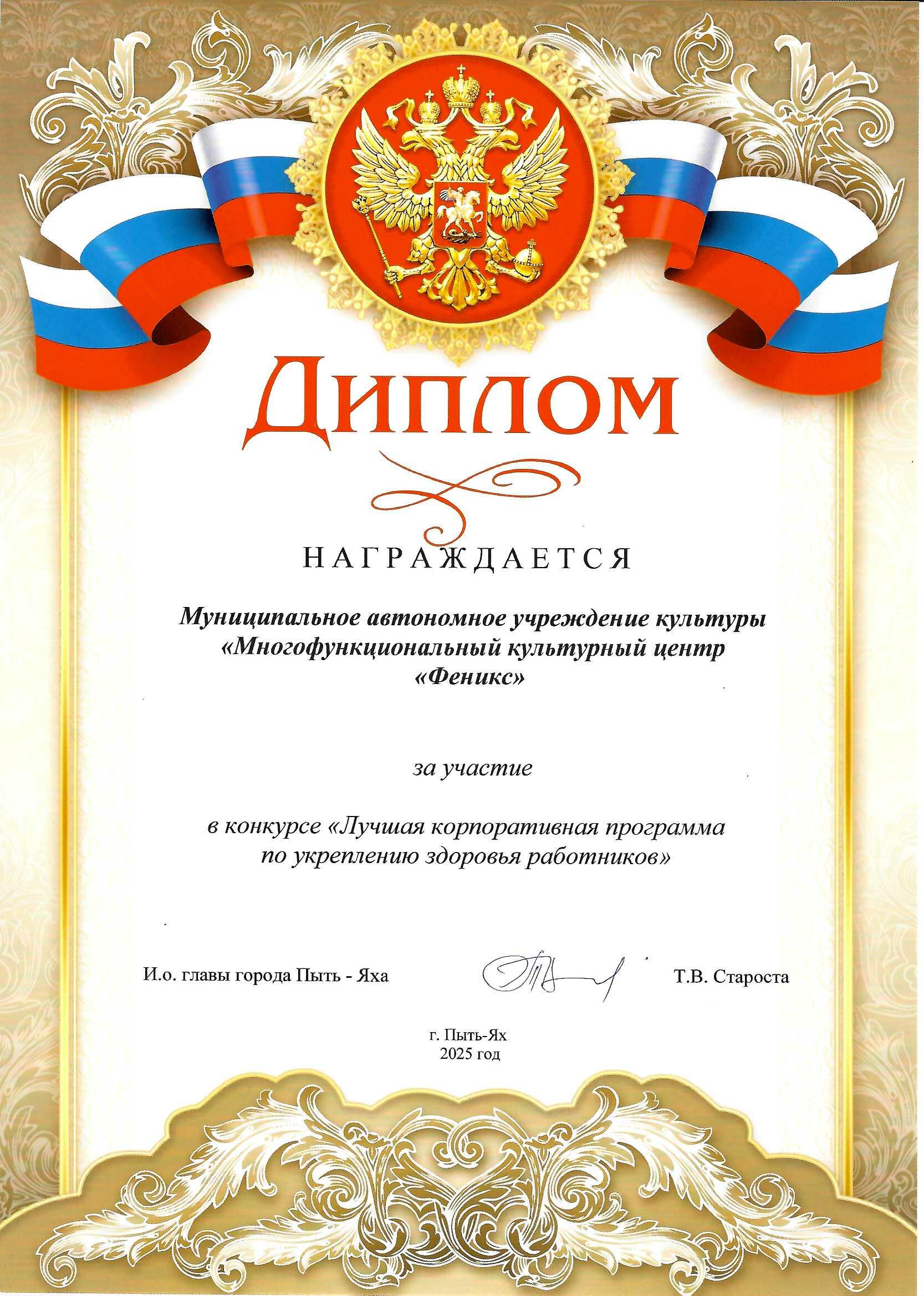 - Диплом за участие в конкурсе «Лучшая корпоративная программа по укреплению здоровью работников»