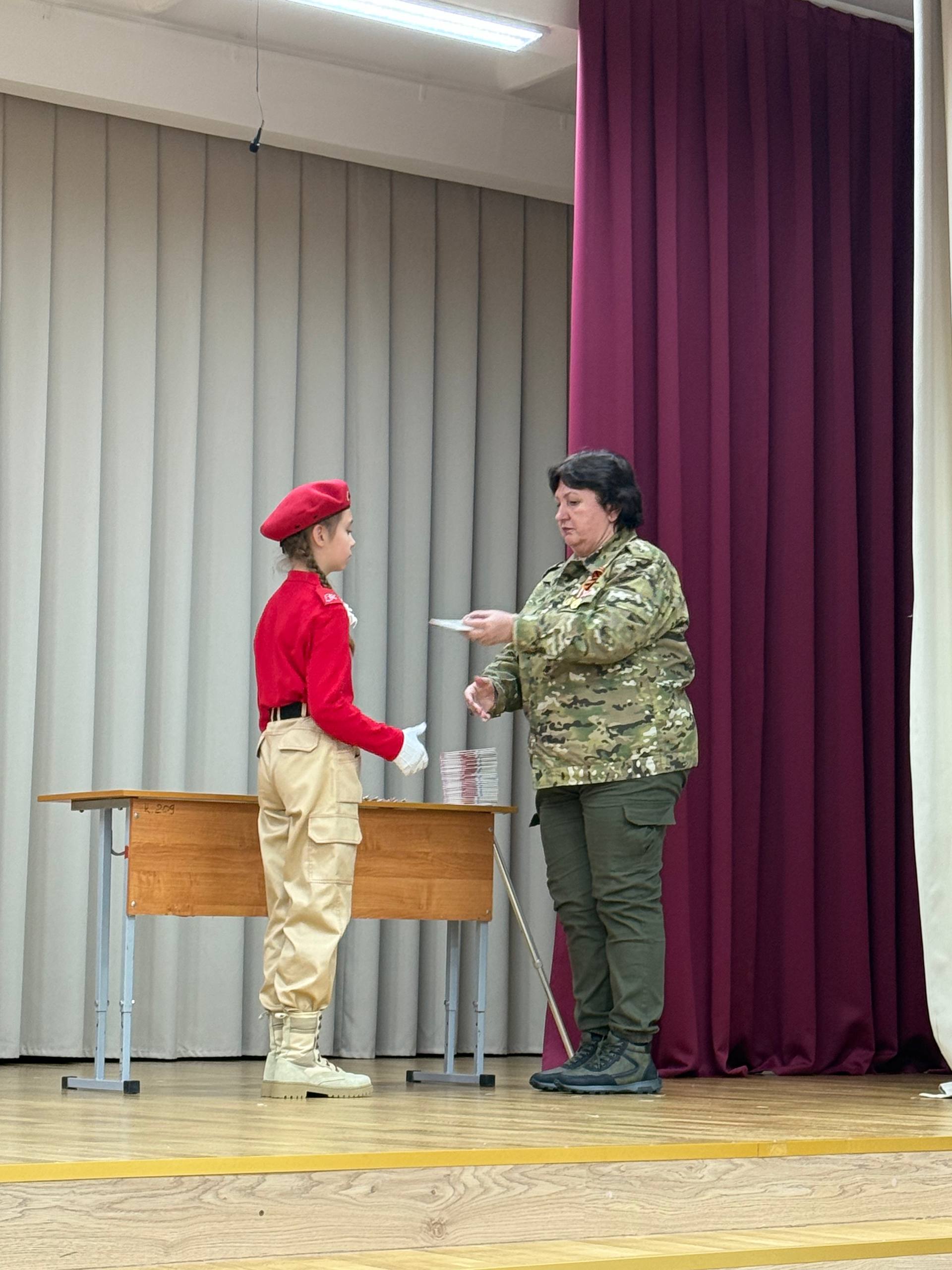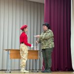 Ряды Юнармии пополнили 29 человек из 5 «Ю» класса. Значки и книжки Юнармейца ребятам вручила начальник местного отделения Всероссийского детско-юношеского военно-патриотического общественного движения «Юнармия» в городе– Ирина Черноусова.