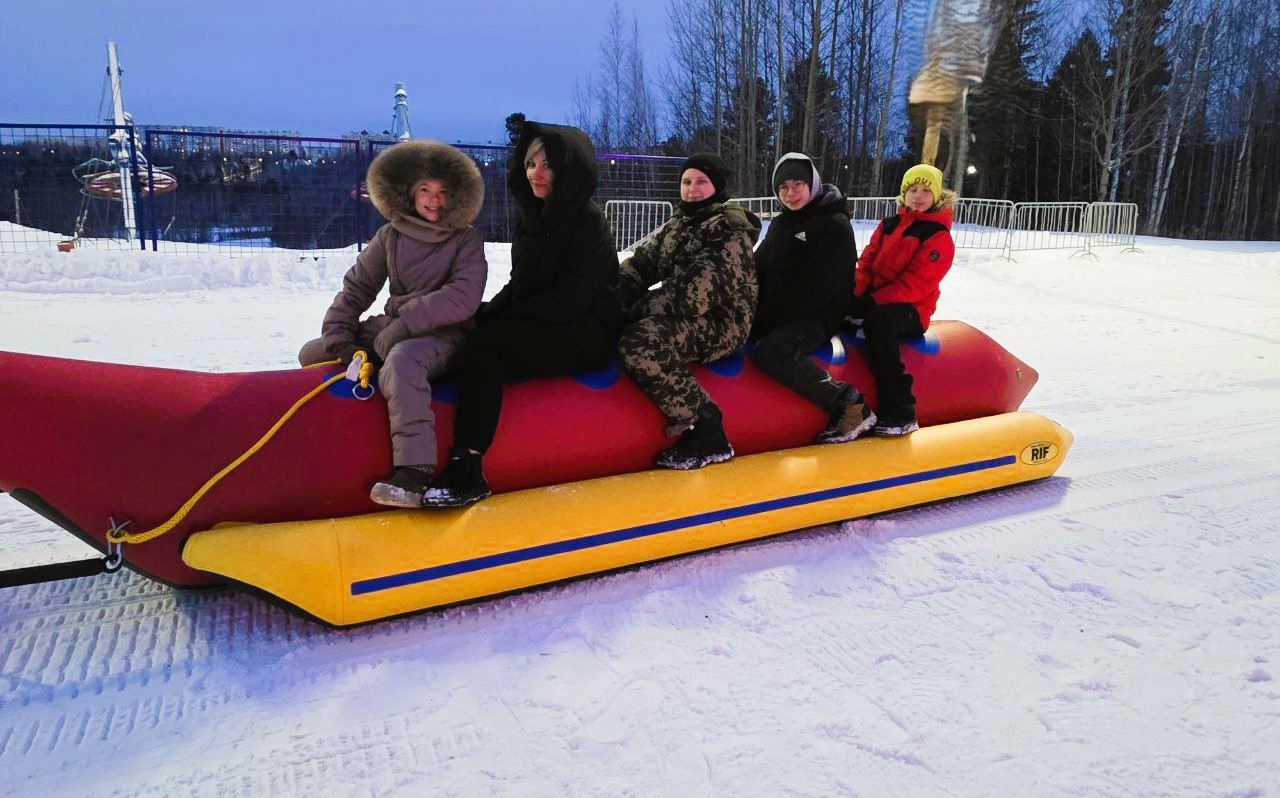 Ребята задорно провели время на свежем воздухе со сказочными персонажами. Восторг у ребят вызвало катание на аттракционах «Банан» и «Тюбинг- карусель».