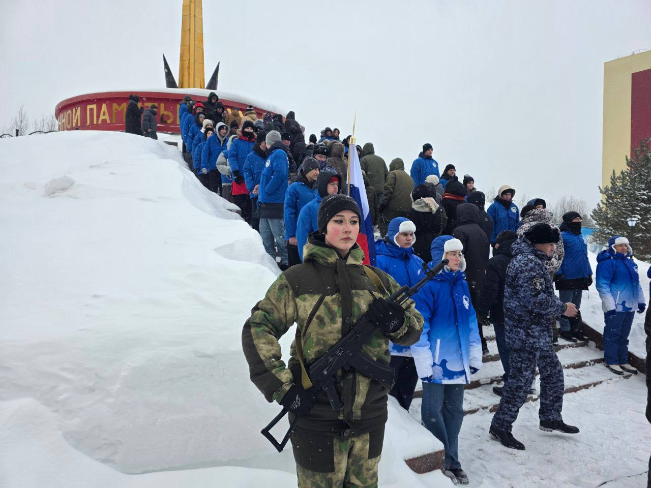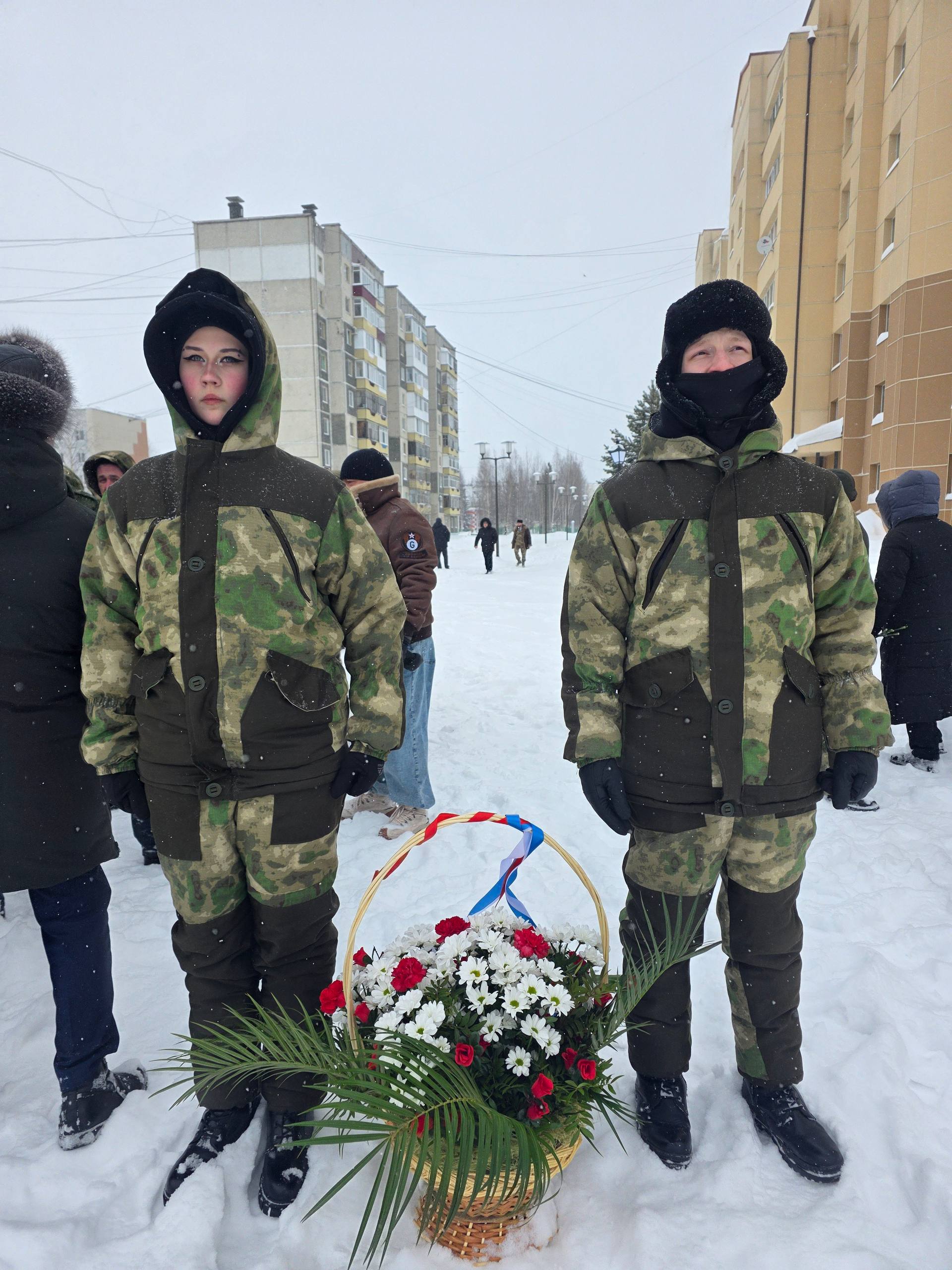 Сотрудники патриотического центра «Витязь» совместно с воспитанниками традиционно организовали почетный караул возле обелиска, а также возложили корзину цветов.