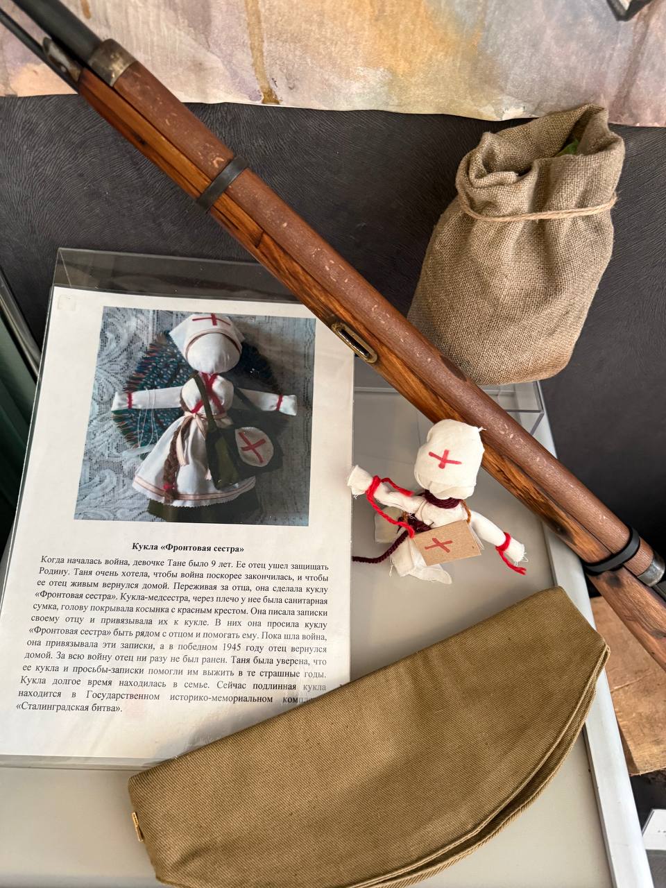 Выставку посвятили специальной военной операции. Нам удалось собрать фотографии, копии архивных документов, а также коллекцию предметов, доставленных из зоны проведения СВО.