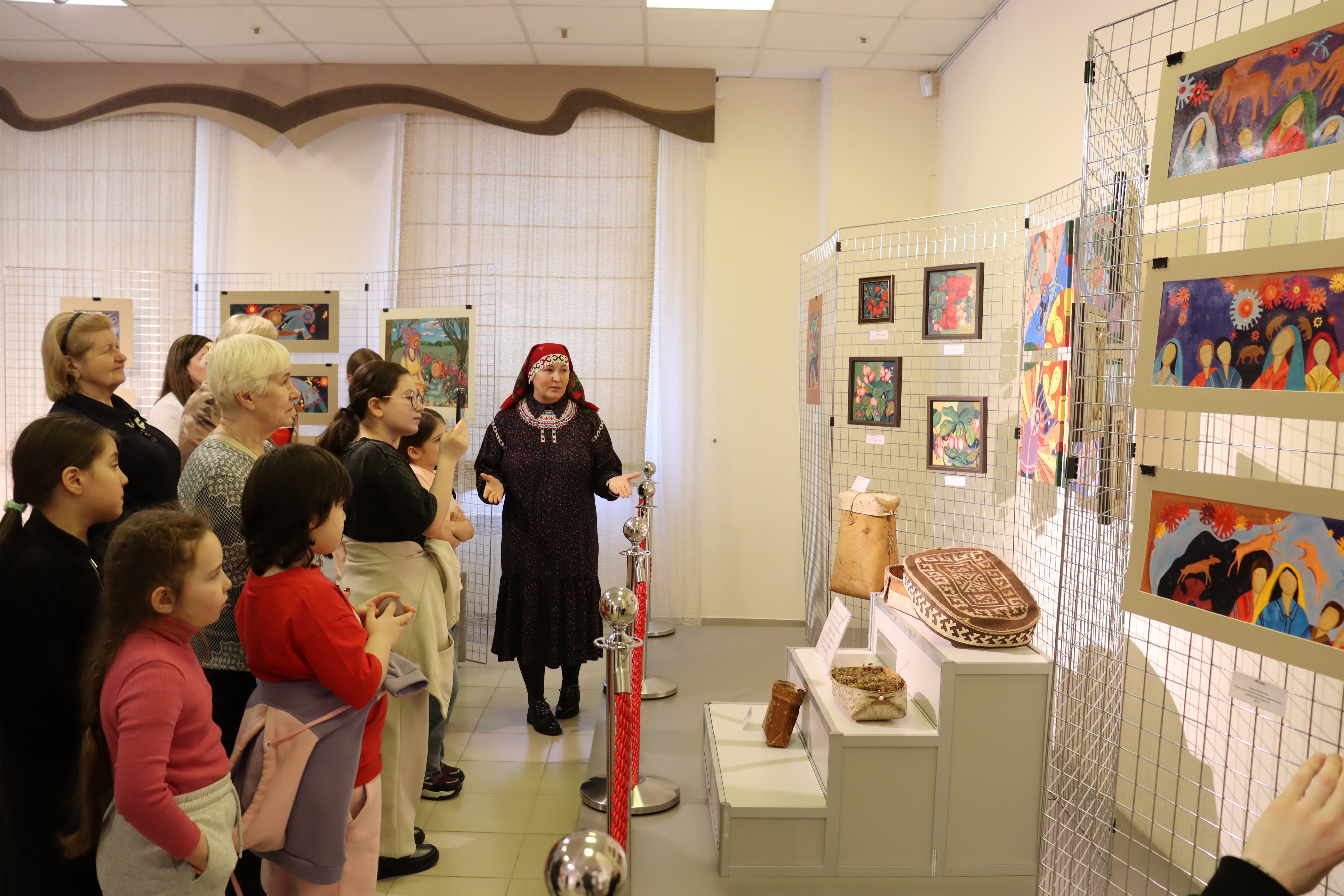 В музейно-выставочном центре состоялось открытие выставки ее работ — лауреата проекта «Золотые имена многонациональной Югры». В экспозиции представлены произведения, в которых переплетаются реальность и мифология, современность и древние хантыйские традиции. Каждая картина — это особая история: о тепле семейного очага, о передаче традиций от старших к младшим, о бережном отношении к природе и миру духов, населяющих северные просторы.